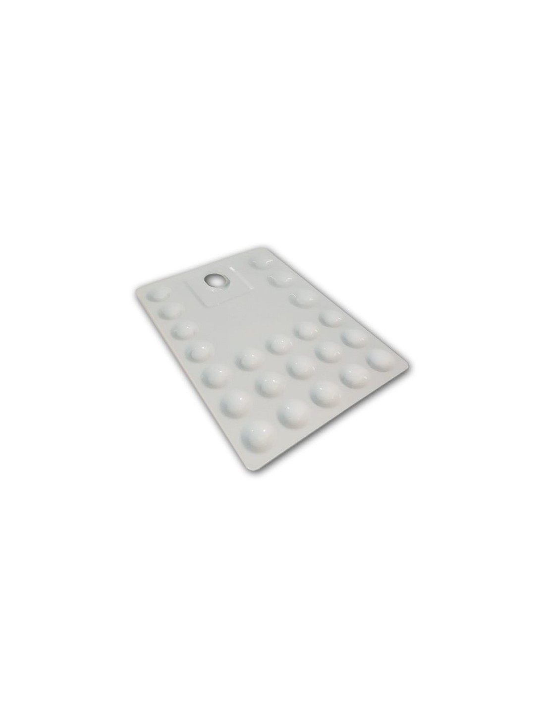 Tavolozza 25x35cm in metallo smaltata per restauratori, resistente ai solventi.