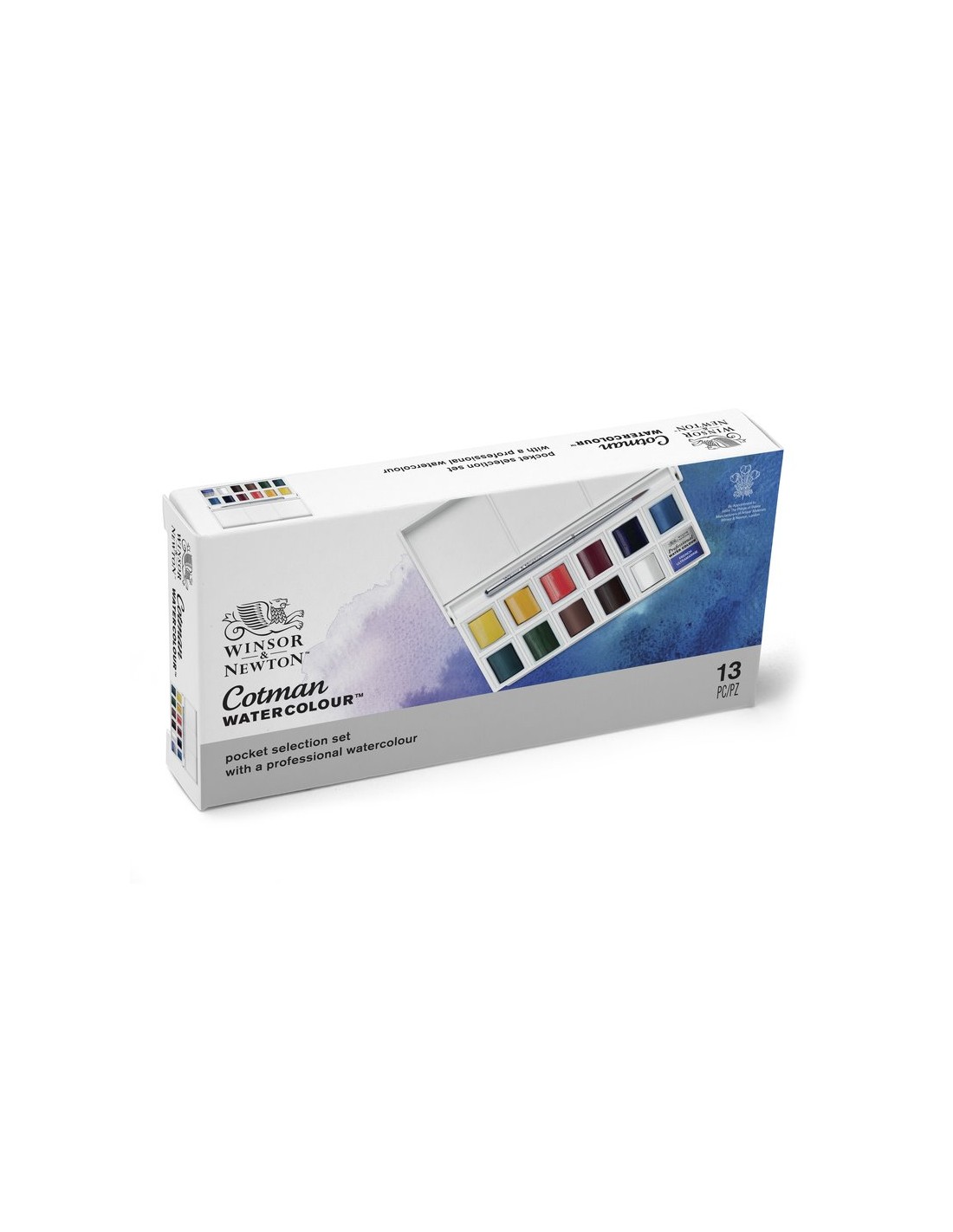 Set 12 1/2 godet acquerello Cotman Winsor & Newton più un pennello sintetico retrattile.