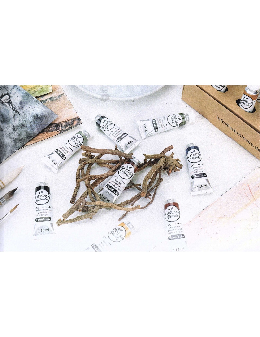 Acquerelli sopraffini vegani, 16 colori esclusivamente con pigmenti naturali della terra e resine/estratti vegetali, miscibili e combinabili con guazzo e acquerello