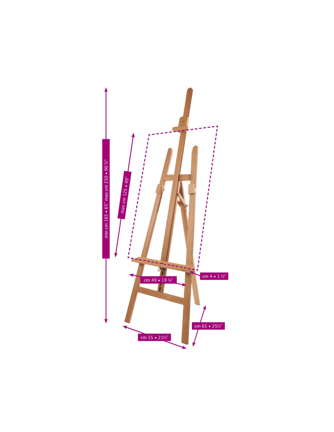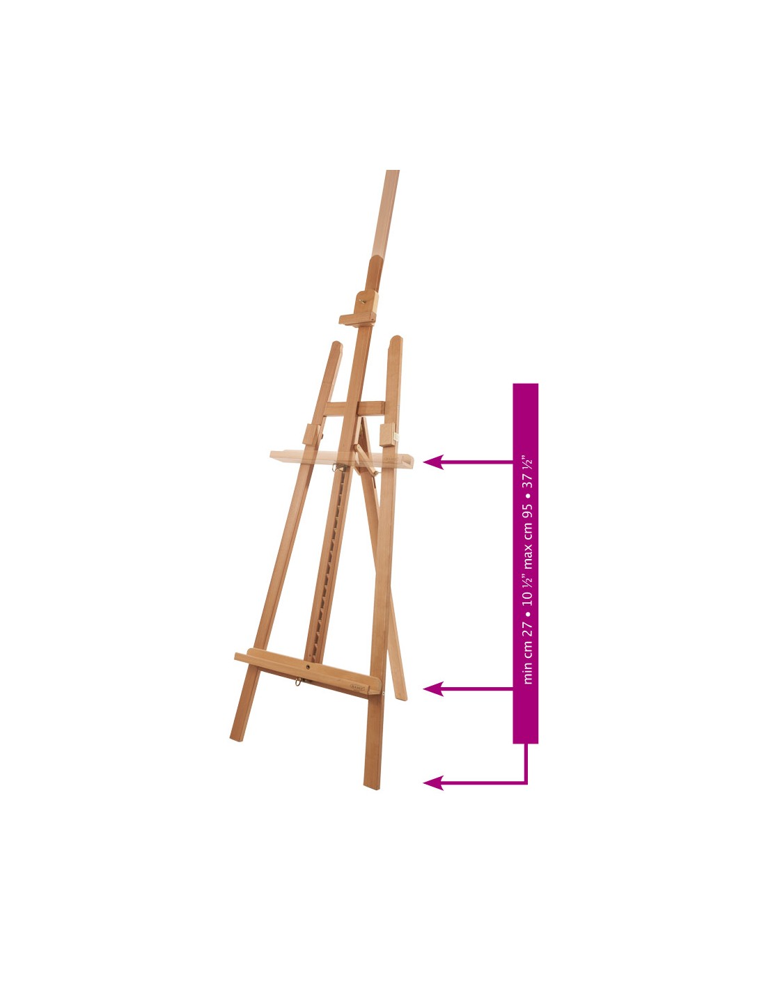 • Costruito in massello di faggio evaporato oliato• Dotato di supporti scorrevoli poggiatela• Molla interna anti-vibrazione• Movimento di elevazione regolato da cremagliera• Fornito in kit di montaggio