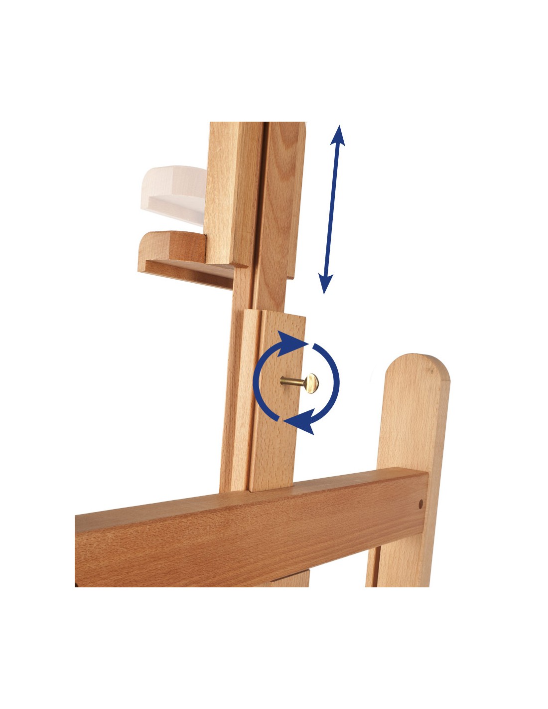 • Costruito in massello di faggio evaporato oliato • Regolazione angolo di lavoro mediante leve • Sistema di sicurezza anti-ribaltamento • Base completamente richiudibile • Movimento di elevazione regolato da cremagliera • Fornito in kit di montaggio