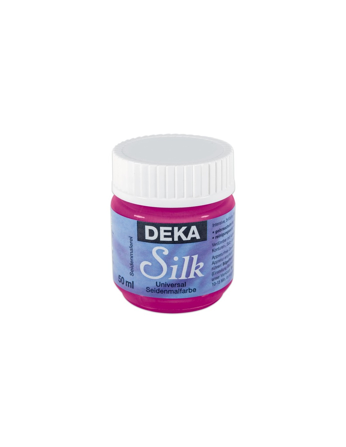 Colori liquidi per dipingere la seta, possono essere fissati con ferro da stiro, in forno a microonde, a vapore o nel forno domestico. Disponibili in vasetti da 50ml