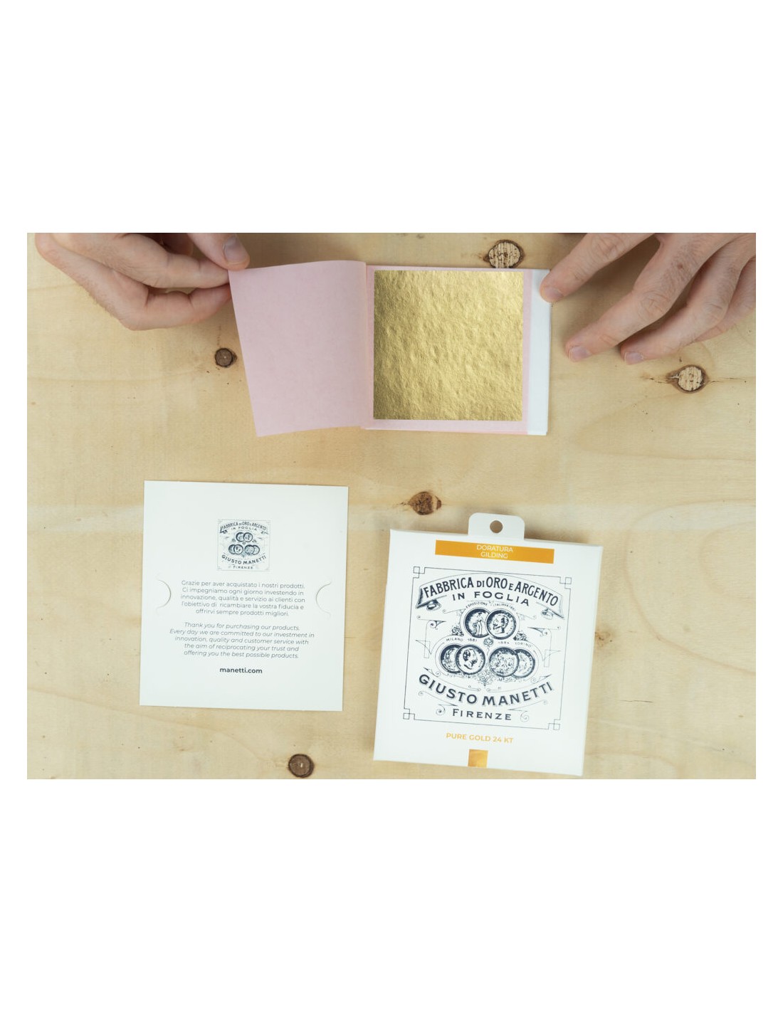 1 Libretto di foglia oro vero 24 kt (10 foglie a decalco 8×8 cm)