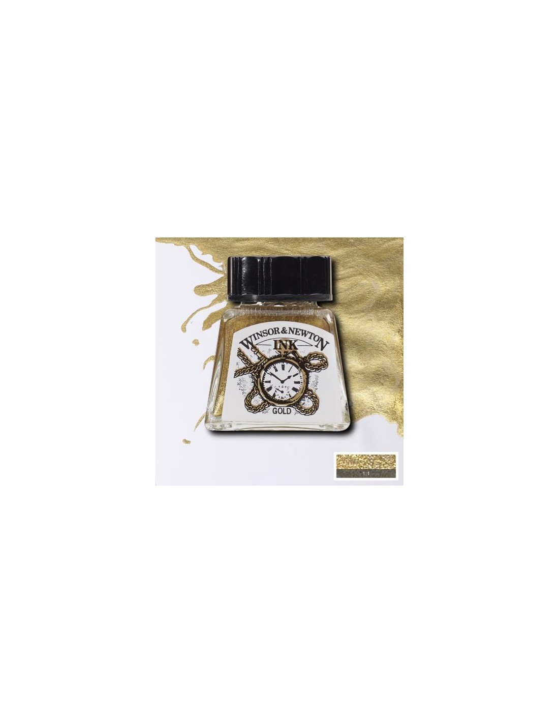 Inchiostro di china Winsor & Newton disponibile in flaconi da 14ml, il nero oro e argento anche in formato da 30ml, il nero anche 250ml e 500ml