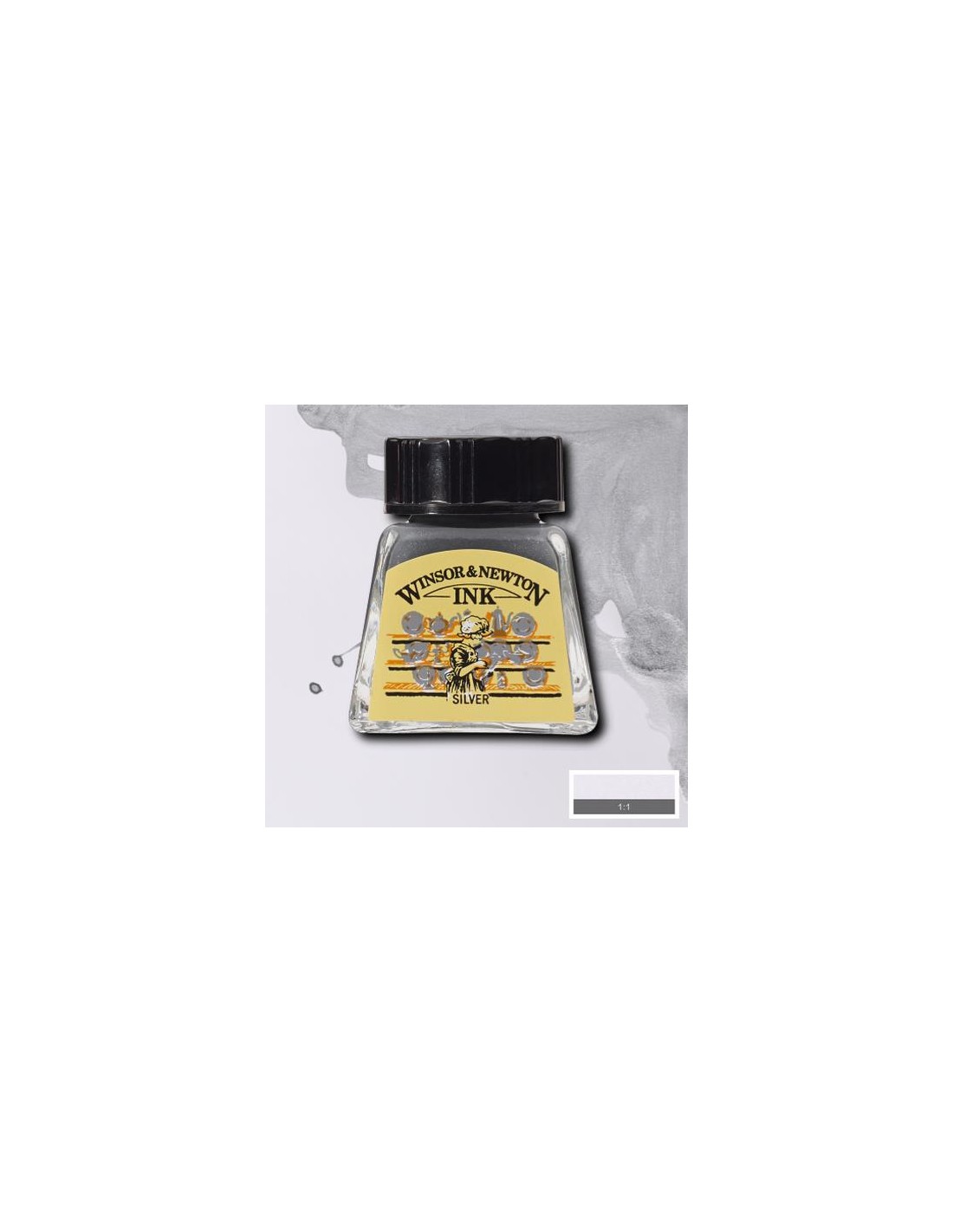 Inchiostro di china Winsor & Newton disponibile in flaconi da 14ml, il nero oro e argento anche in formato da 30ml, il nero anche 250ml e 500ml