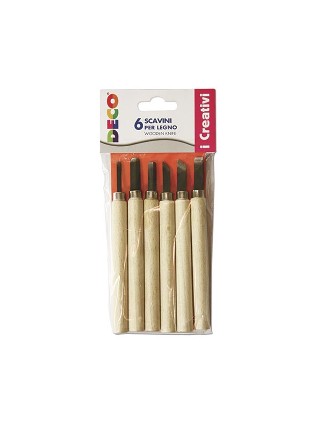 Set da 6 scavini, punta in ferro e manico di legno, di forme diverse per incidere su legno, linoleum o adigraf.