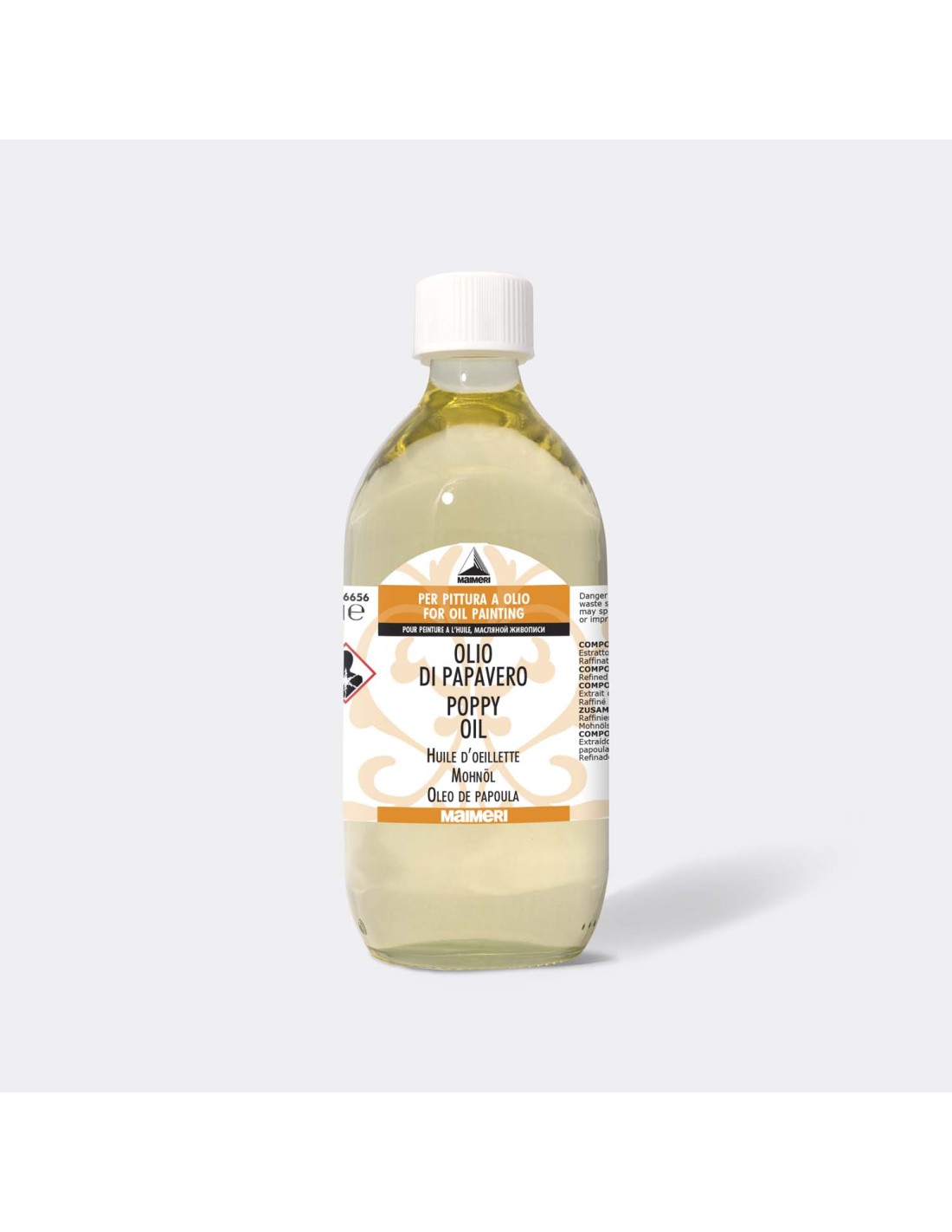 Estratto di semi di papavero raffinato; olio semi siccativo di estrema purezza e resistenza alla luce; lenta essicazione ma non ingiallente