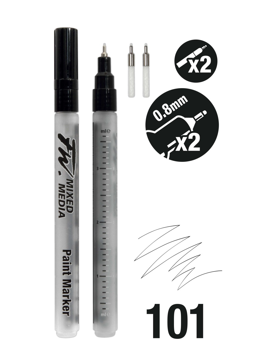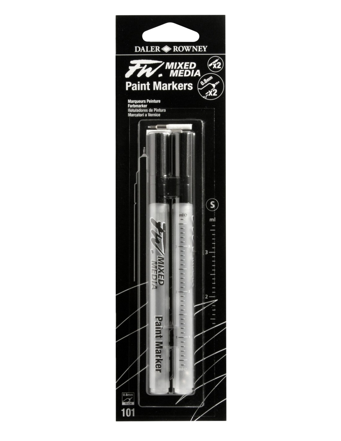 I marcatori Daler-Rowney FW Mixed Media Paint Markers sono pennarelli ricaricabili che possono essere utilizzati con un'ampia varietà di supporti liquidi come inchiostri acrilici come inchiostri acrilici FW, colori ad acquerello o inchiostri da disegno, o riempiti con acqua per l'uso come frullatore di matite acquerellate. I marcatori FW Mixed Media vuoti possono quindi creare un numero illimitato di singoli colori attraverso la miscelazione e la diluizione.