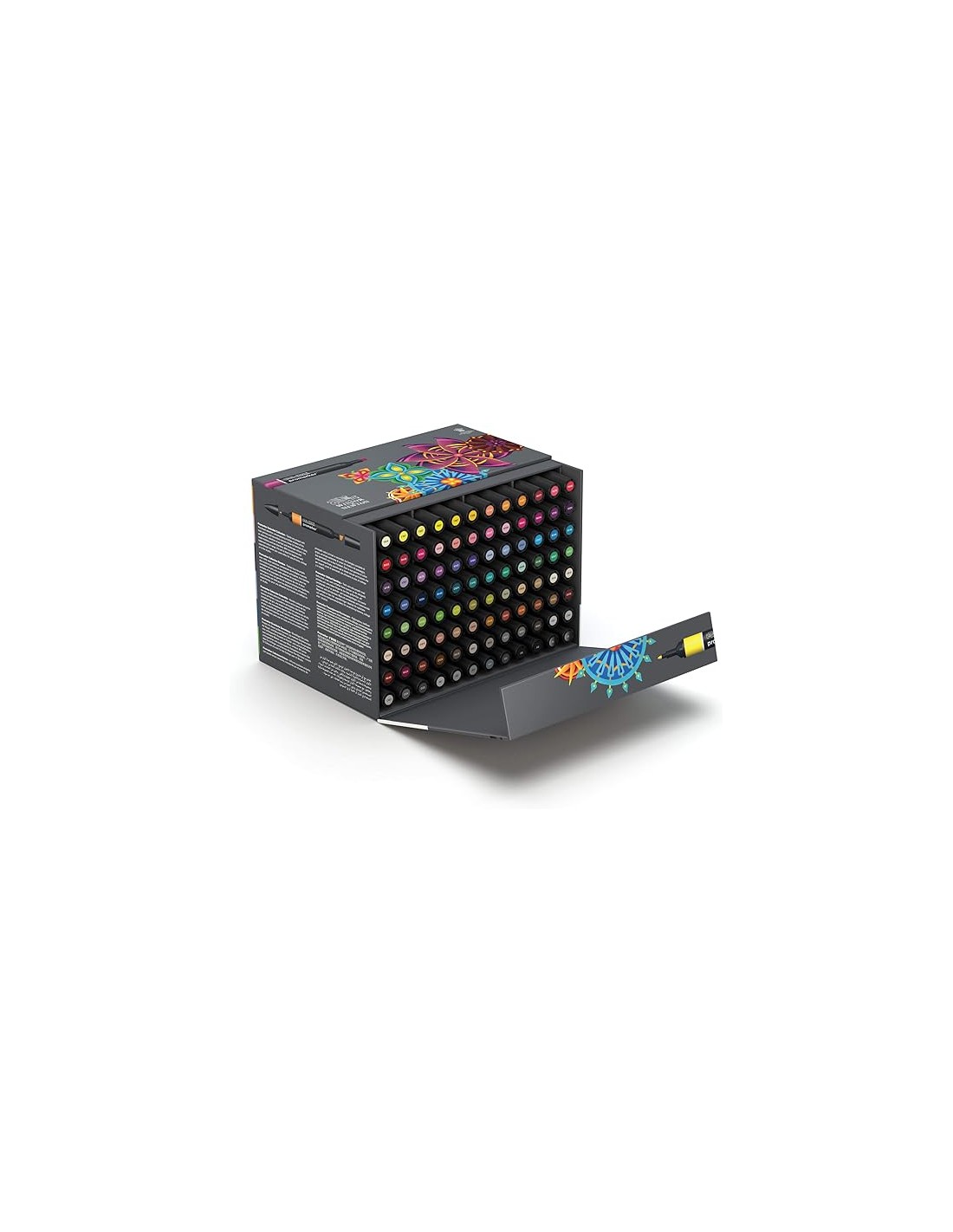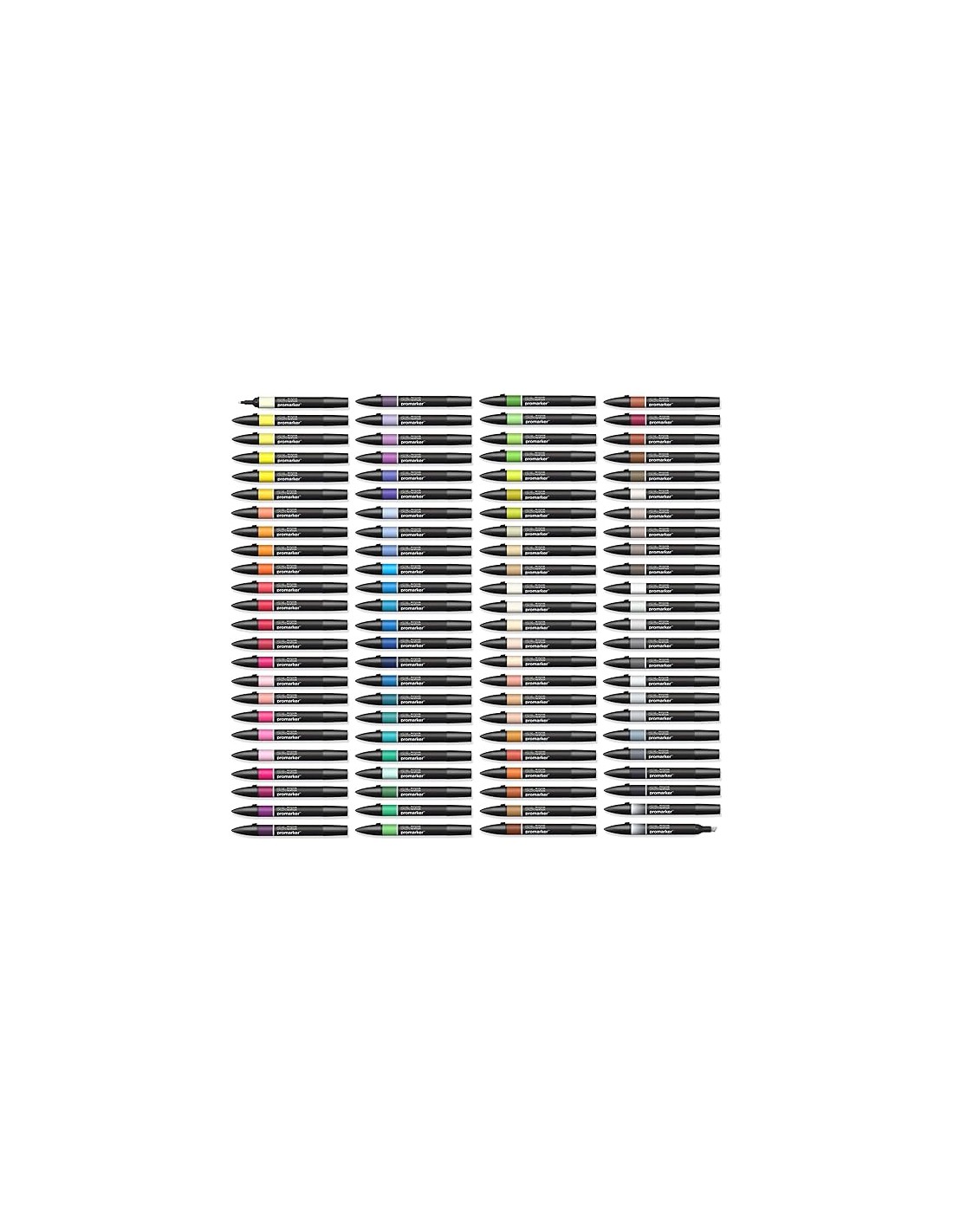 96 colori essenziali della gamma di pennarelli Winsor & Newton, contenuti in una elegante scatola in cartone con chiusura magenta.