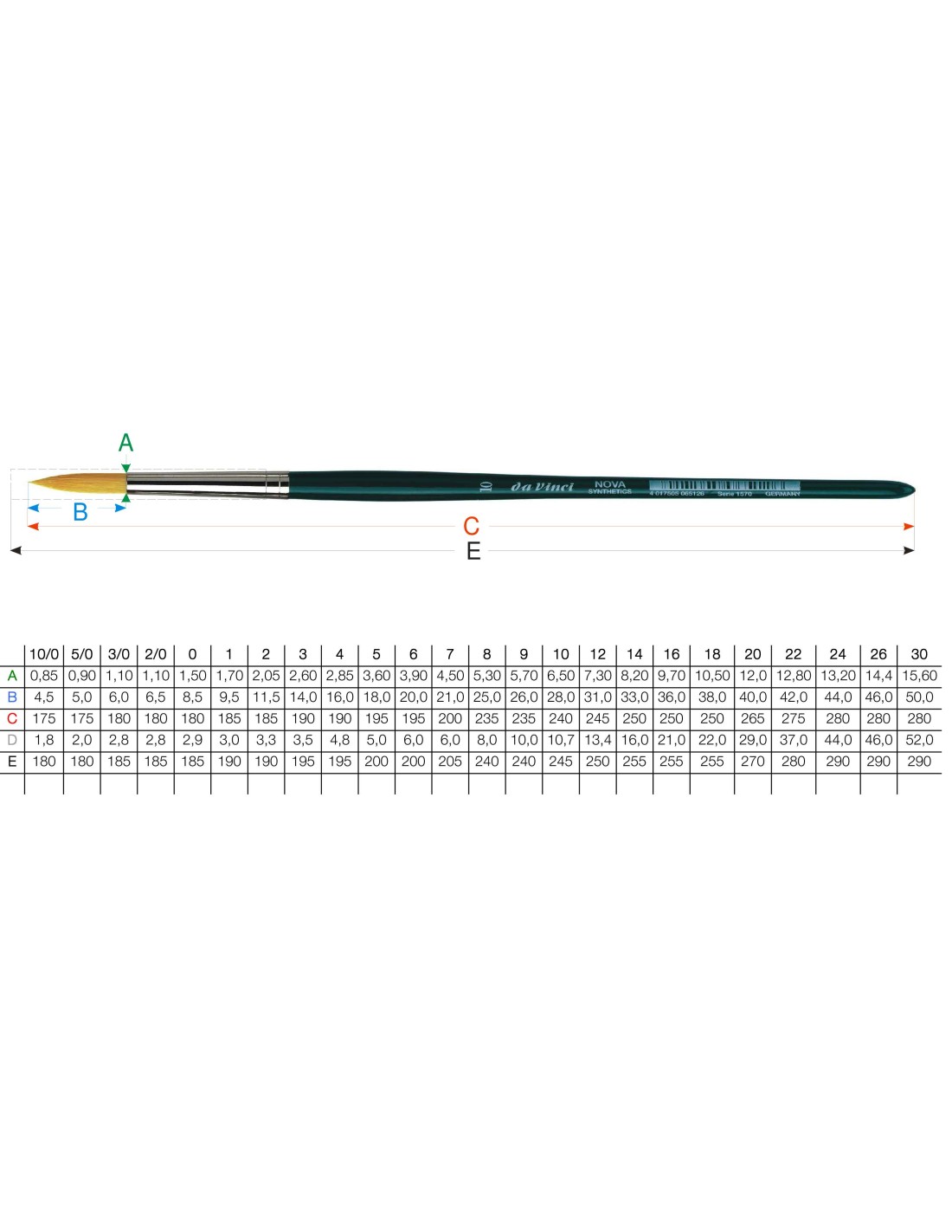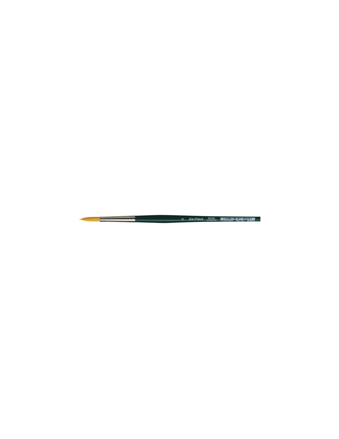 Pennello per acquarello NOVA tondo in pelo sintetico extrafine dorato, ghiera argentata, manico corto, verniciato di verde, numerazione internazionale dal n. 10/0 al n. 30, esclusi i n. 4/0,11 e 28