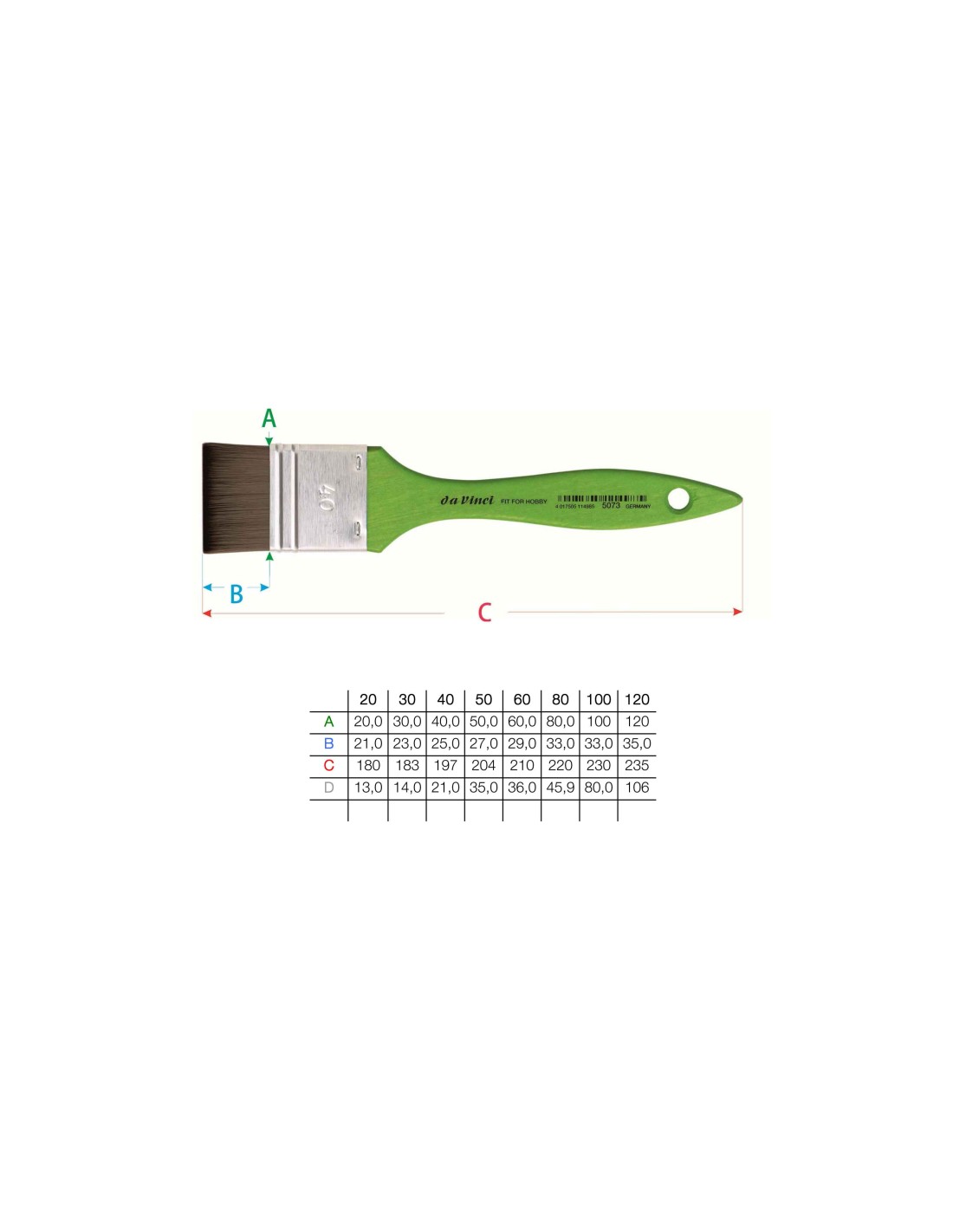 Pennellessa elastica fibra sintetica di colore grigio, ghiere in alluminio senza saldatura, manico verde opaco con una struttura di superficie innovativa.