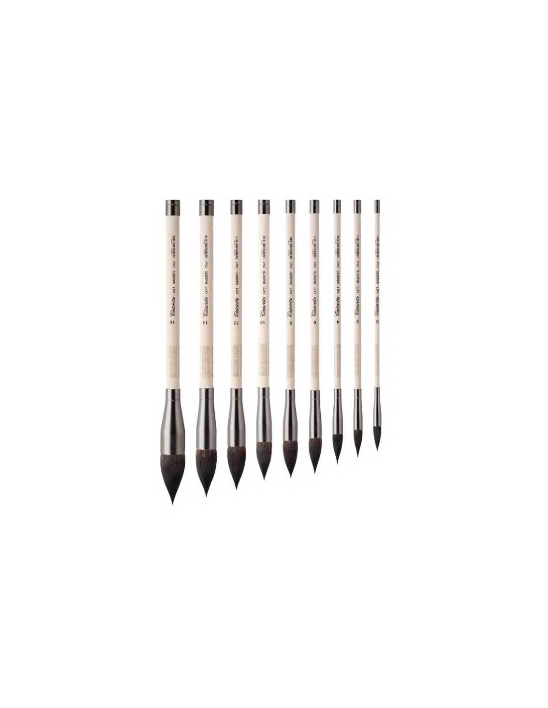 Rispetto ad un pennello tradizionale asiatico al posto del manico in bambù utilizza manici in legno di betulla verniciati a buratto waterproof e antiscivolo la ghiera in plastica è sostituita da una ghiera in ottone verniciato e le fibre sono tutte rigorosamente 100% sintetiche.