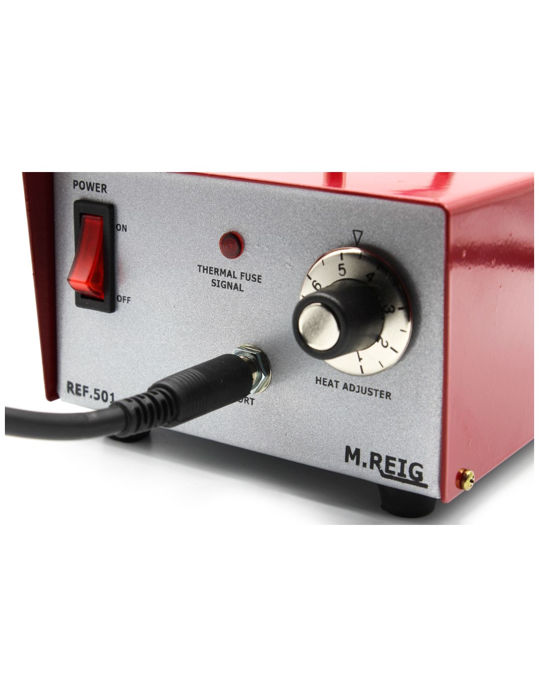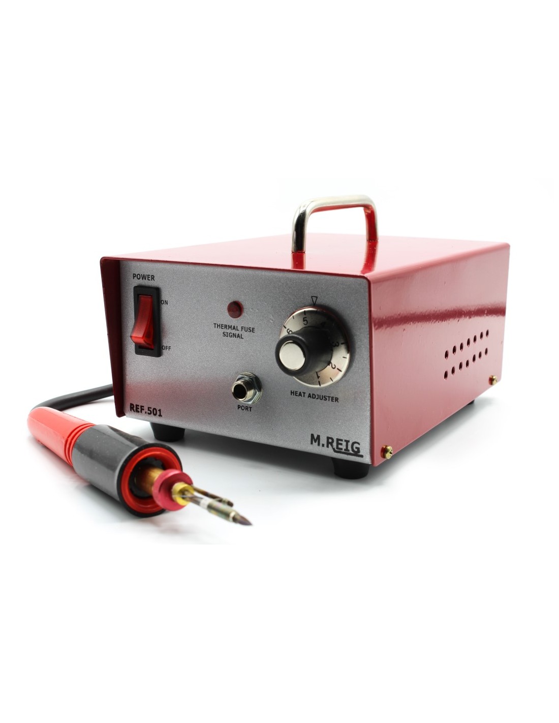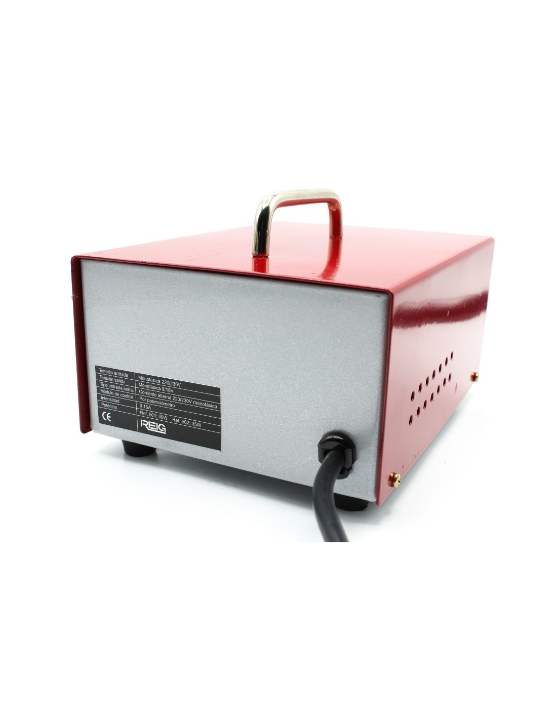 Pirografo professionale a 1 uscita elettronica - Tensione di ingresso monofase - Tensione di uscita monofase 8-16V - Dimensioni 176.5x133x87.5mm. - Metodo di controllo del potenziometro - Potenza 30w