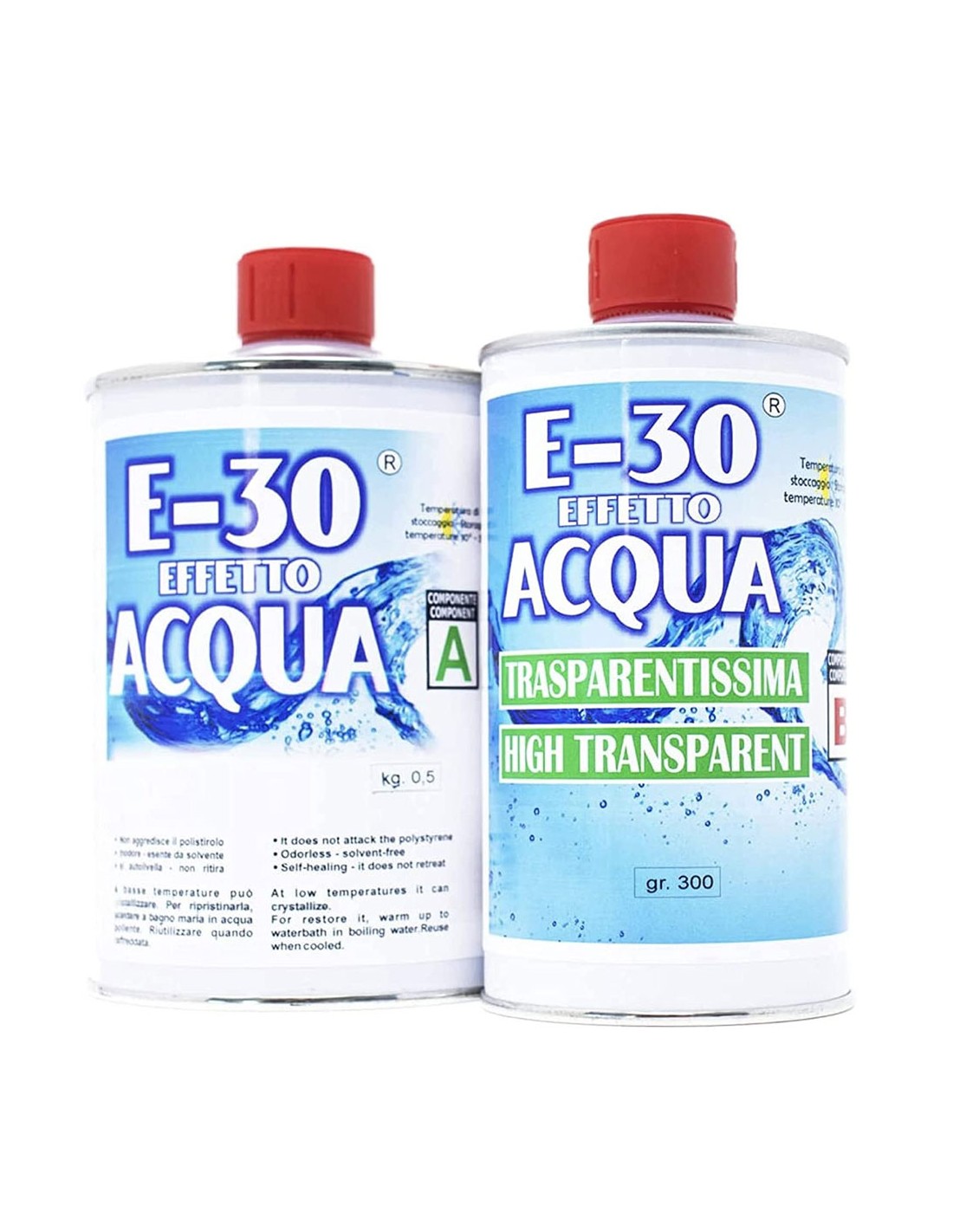 E-30 "EFFETTO ACQUA" è un formulato epossidico caratterizzato dall'elevata trasparenza dei suoi componenti.