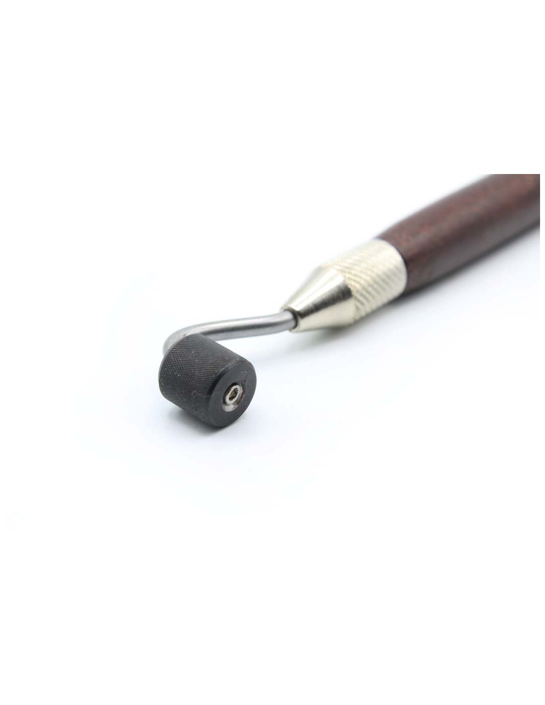 La manovrabilità e la precisione di questo rullo con un motivo scanalato, fortemente marcato, facilita notevolmente lo stampaggio sul metallo. Il rullo è realizzato in acciaio temperato e la sua maniglia è in legno verniciato. Il diametro di questo rullo è 10x10mm, per un passo di 0,3mm, e la sua lunghezza è di 215mm. Il diametro e la lunghezza dell'utensile sono stati sapientemente combinati per dare la massima manovrabilità e precisione alla realizzazione del suo disegno scanalato.