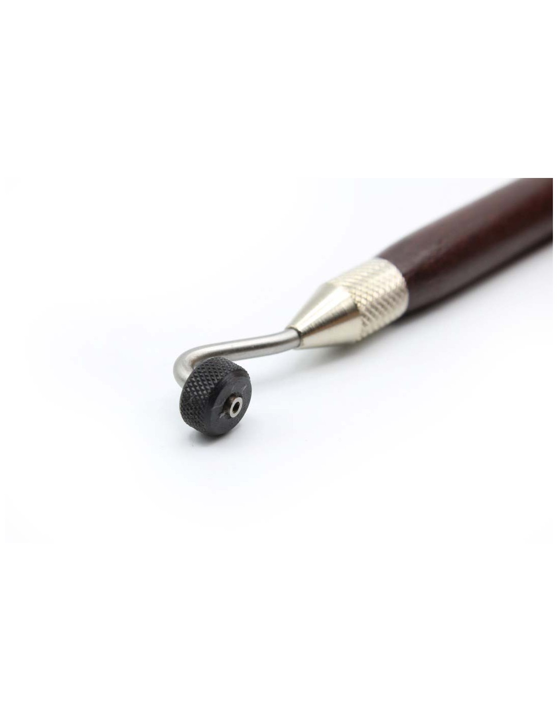 La manovrabilità e la precisione di questo rullo con un motivo scanalato, fortemente marcato, facilita notevolmente lo stampaggio sul metallo. Il rullo è realizzato in acciaio temperato e la sua maniglia è in legno verniciato. Il diametro di questo rullo è 10x5mm, per un passo di 1 mm, e la sua lunghezza è di 215mm. Il diametro e la lunghezza dell'utensile sono stati sapientemente combinati per dare la massima manovrabilità e precisione alla realizzazione del suo disegno scanalato.