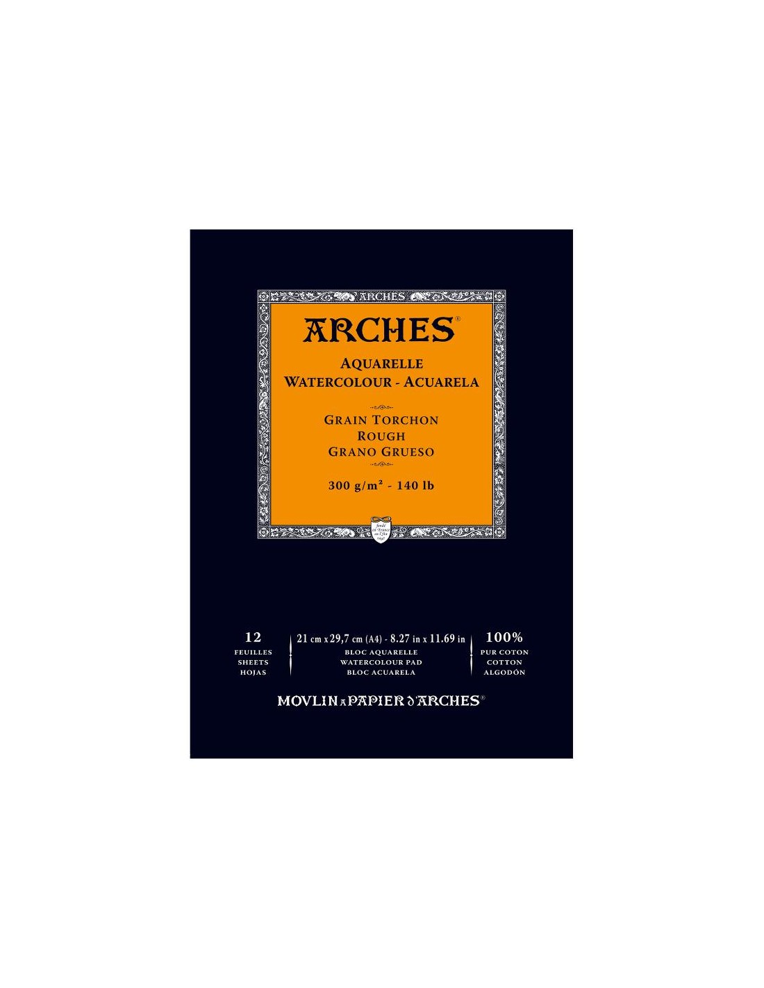 Blocco con 12 fogli da 300gr grana grossa colore bianco naturale collati sul lato corto, ideale per acquerello, così come per tutte le tecniche d'umido come inchiostro, guazzo e acrilico.