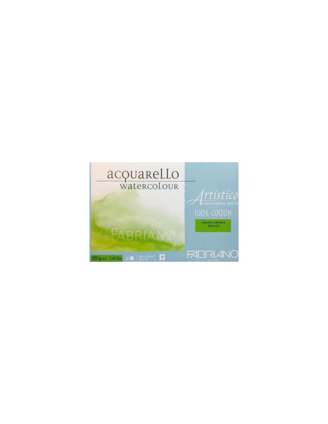 Blocco da 20 fogli bianco naturale 300gr 100% cotone a grana grossa collati 4 lati. La carta per acquerello Fabriano artistico è prodotta a macchina in tondo.