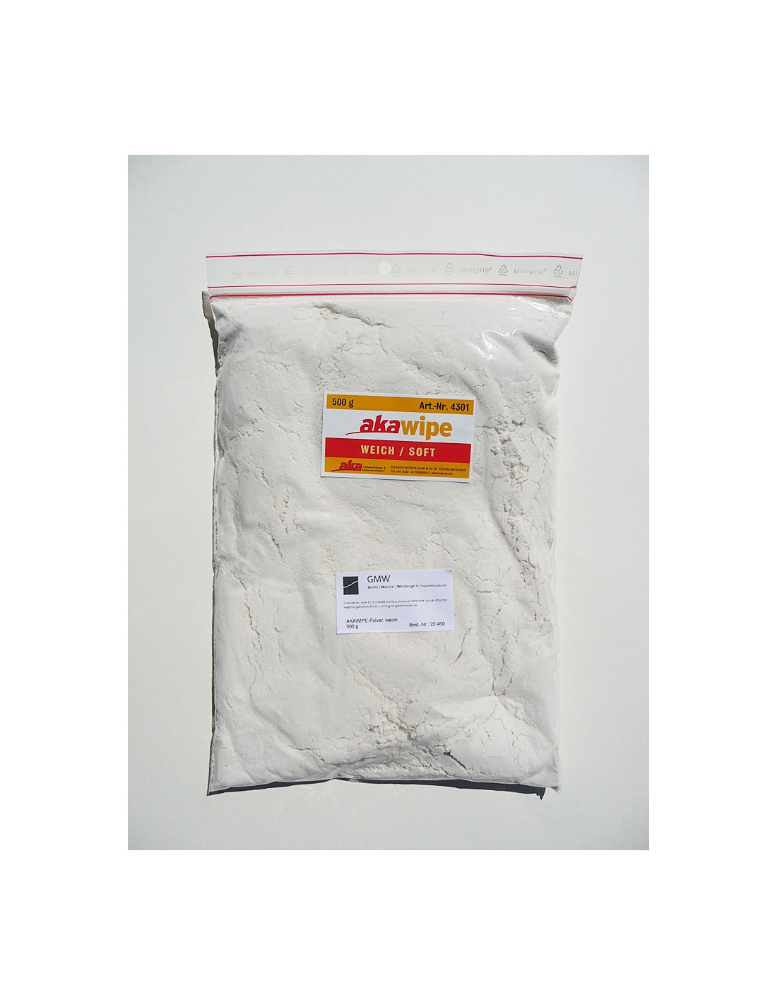 Polvere bianca di spugna di tipo tenera per la pulitura di superfici delicate come i manufatti cartacei.
